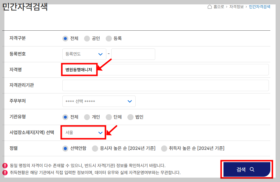 ▶ 자격명에 ‘병원 동행 매니저’ 입력