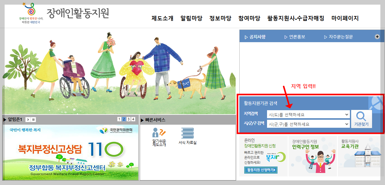 1️⃣ 장애인활동지원 홈페이지 이용하기